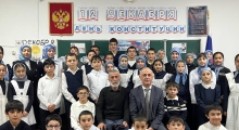 Сайпилав Магомедов поздравил всех с праздником, с Днём Конституции РФ, вручил грамоту победителю муниципального этапа конкурса «Права человека глазами ребенка» Хадижат Назировой. Он также вручил Благодарность Рамазану Абдурахманову за подготовку Назировой. Еще одну грамоту получила ученица 8-го класса Хадижат Назирова, занявшая первое место на муниципальном этапе конкурса «Ученик года-2025».